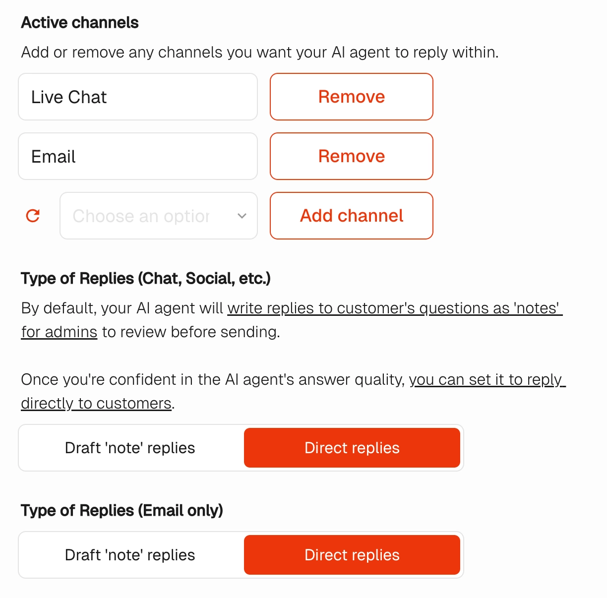 By default your AI agent will reply to all inbound emails and chat conversations.
