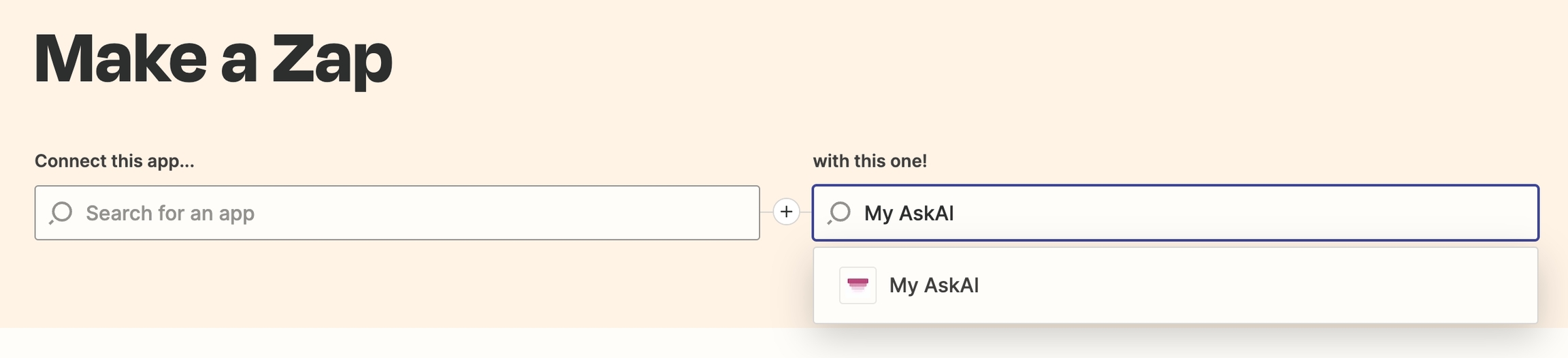 Within Zapier you can search for My AskAI as an Action to add to your Zap.